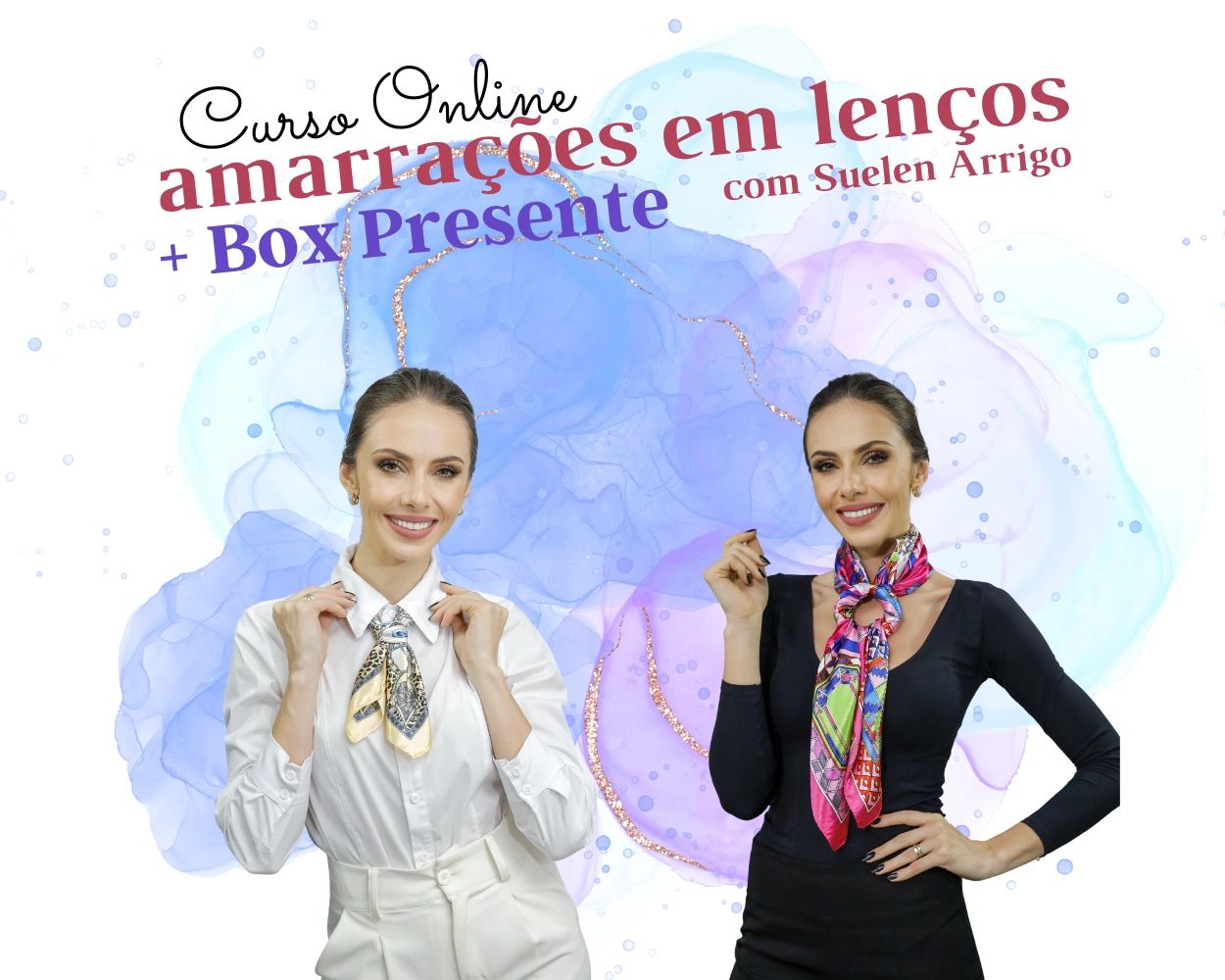 Ao adquirir o curso Aprendendo Amarrações em Lenços com Suelen Arrigo, você receberá um acesso a plataforma com vídeo aulas explicativas + ideias de looks para compor visual com lenço e, como bônus, receberá em sua casa um box-presente para já sair praticando!